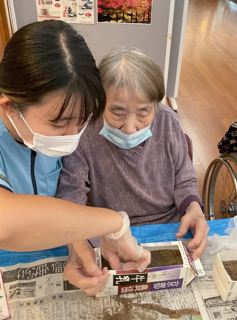 利用者さまと一緒に土にふれ、種をまき、収穫を楽しんでいきたいと思います。